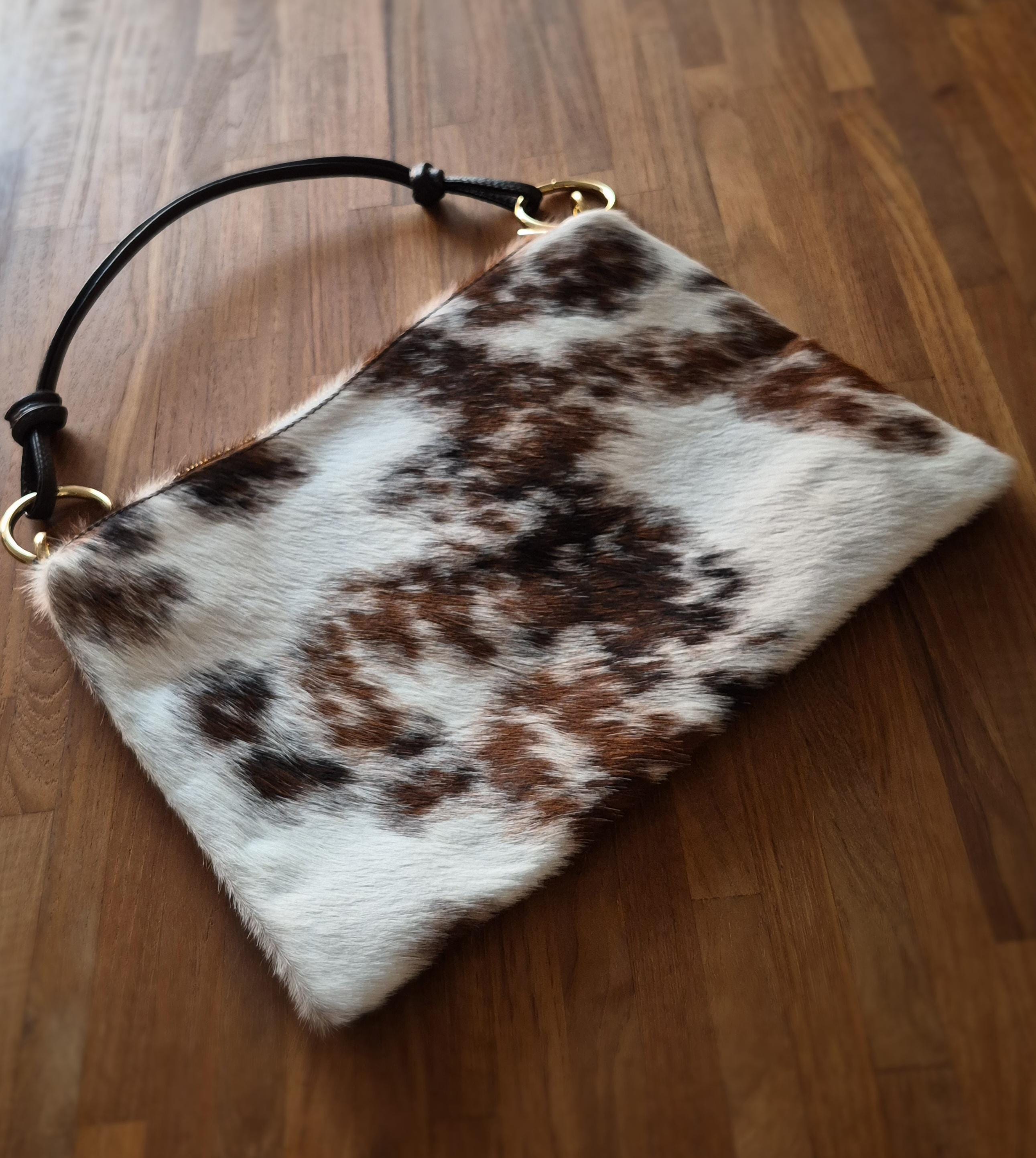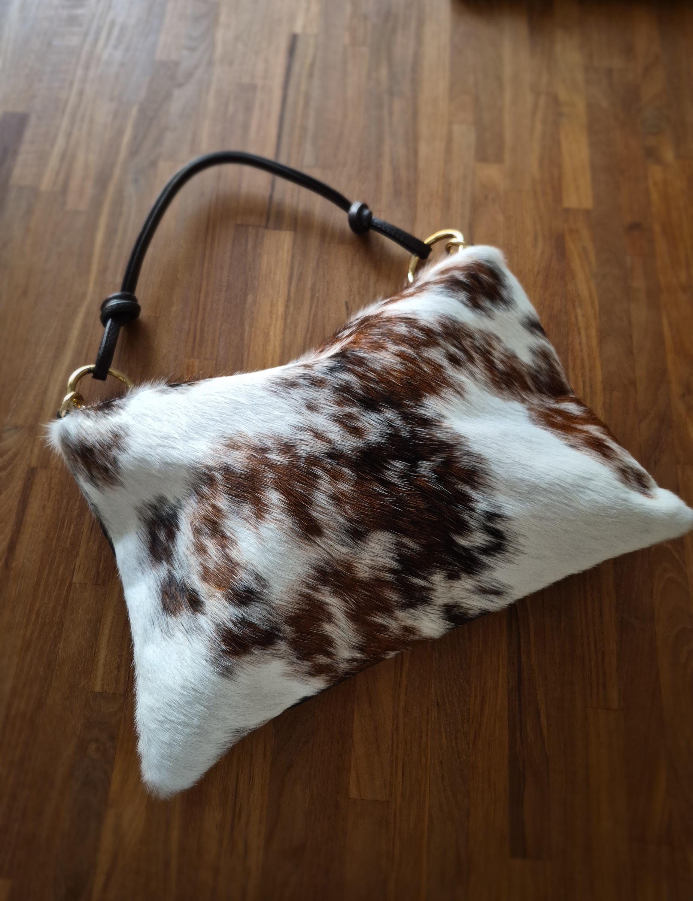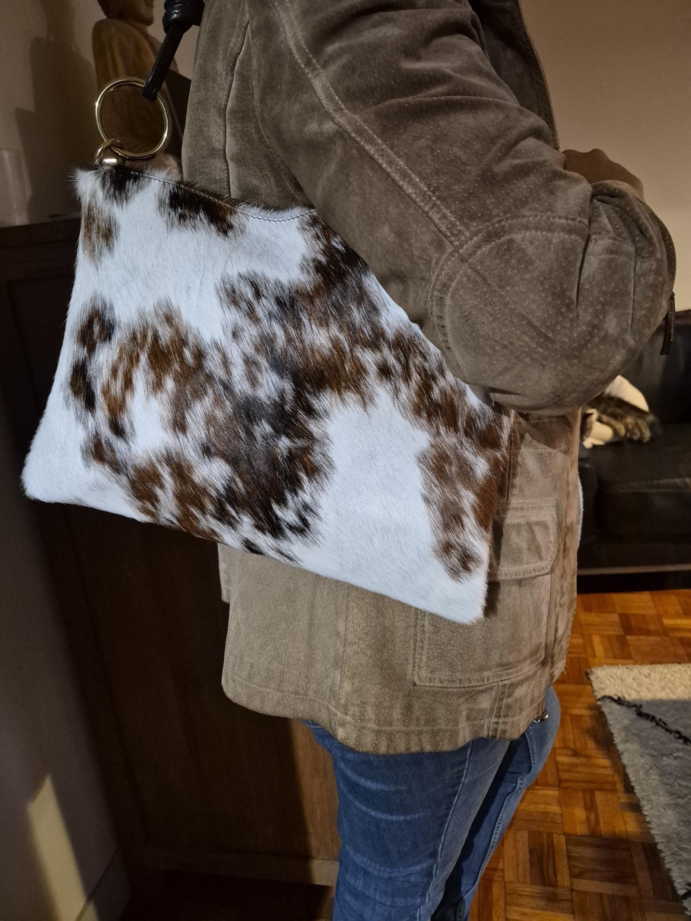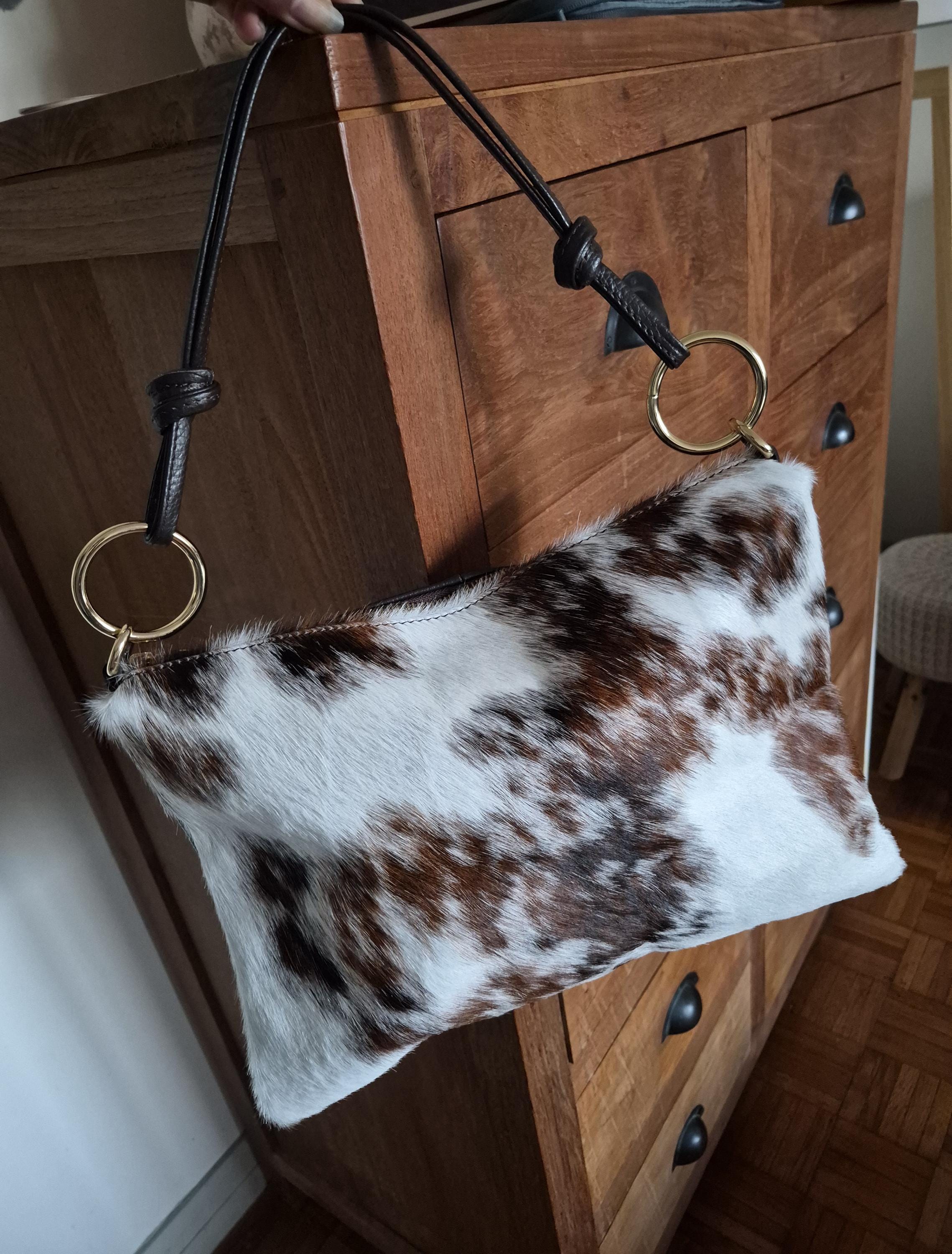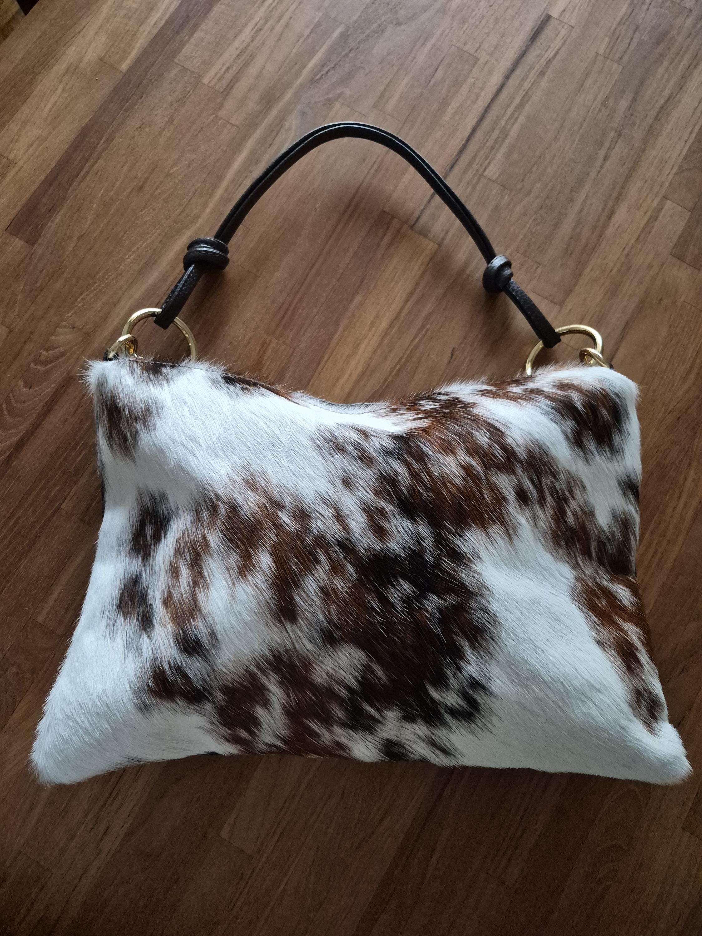 This magnificent cowhide print handbag is a unique piece that combines rustic elegance and modernity.