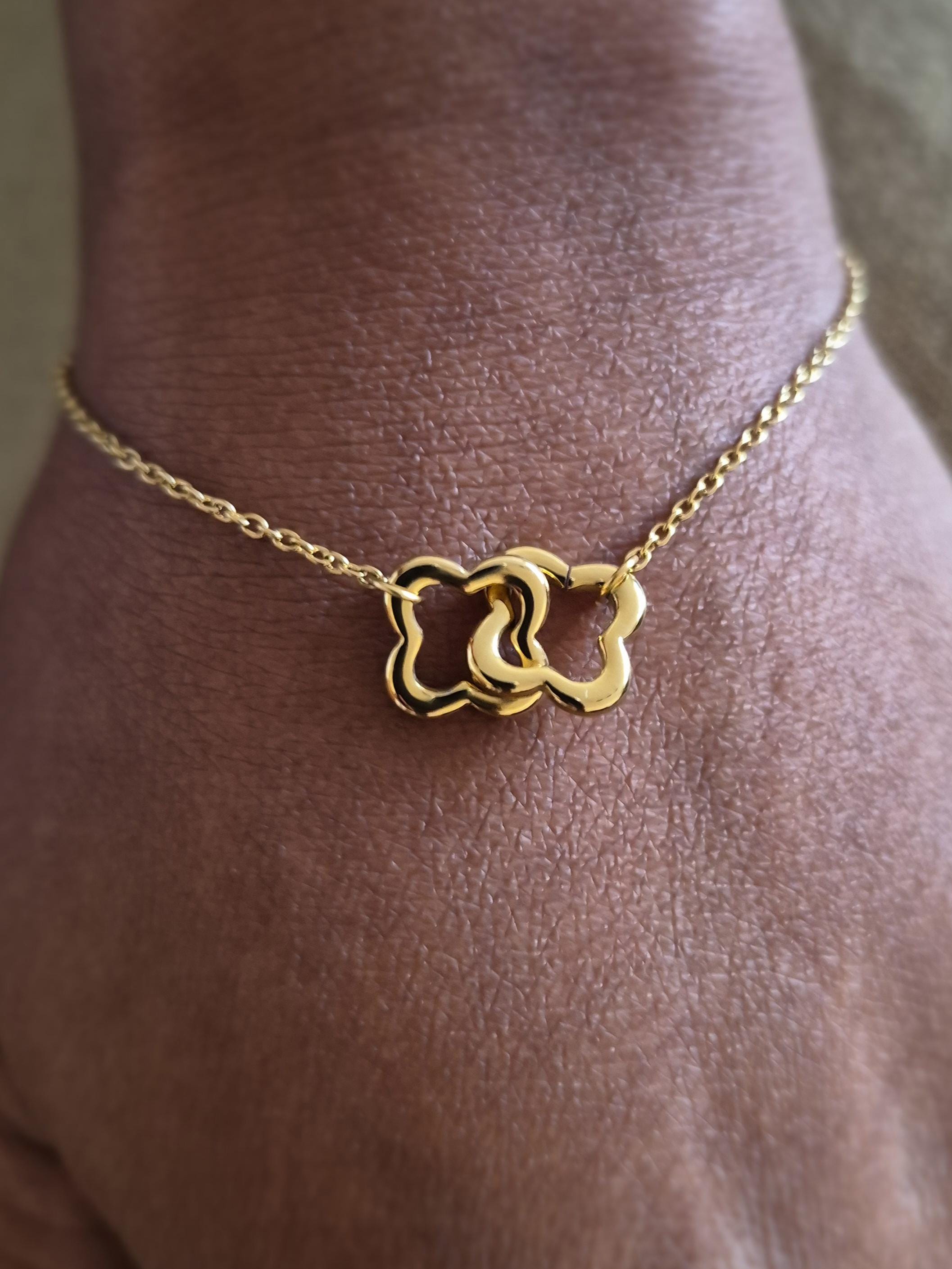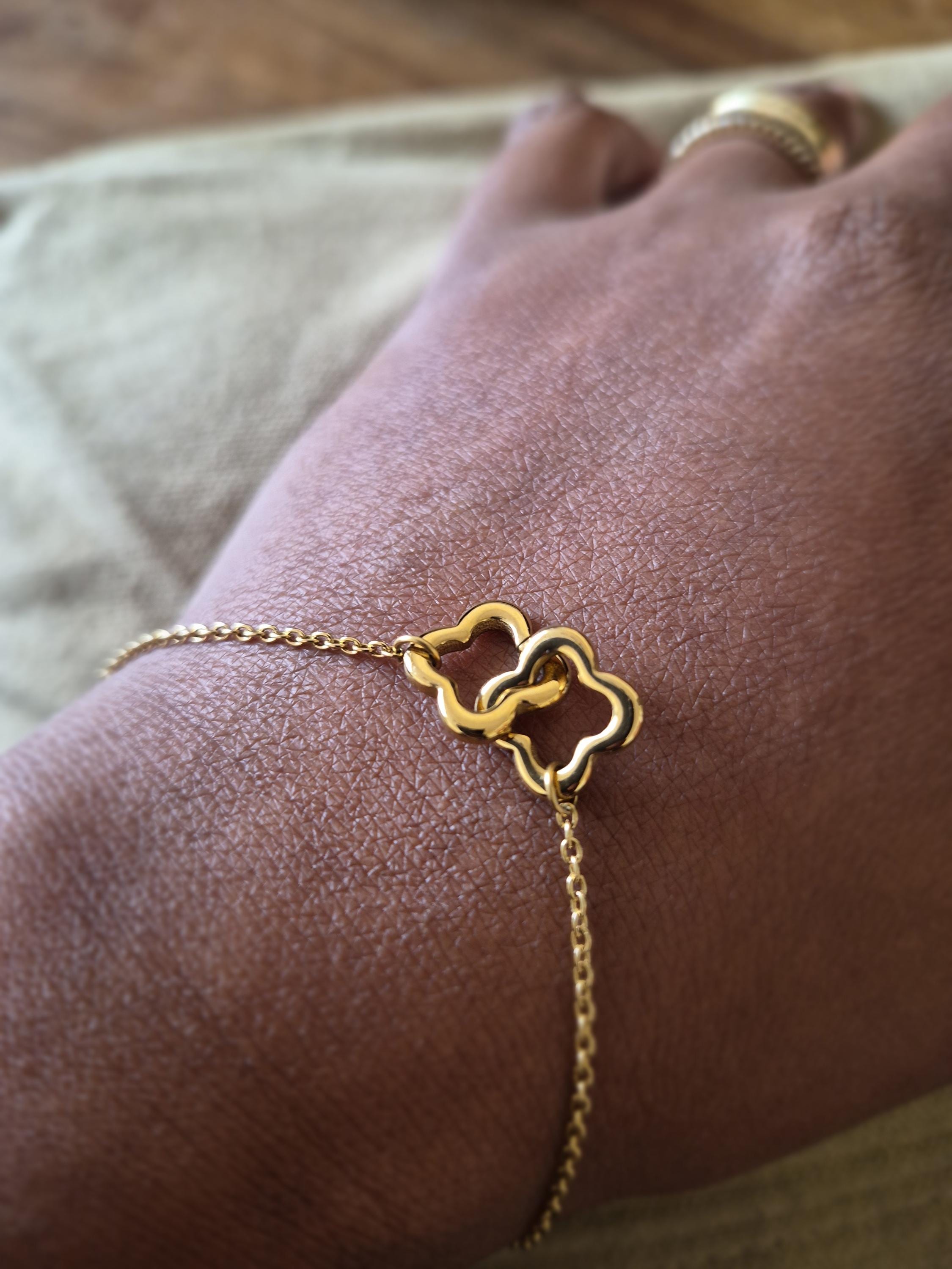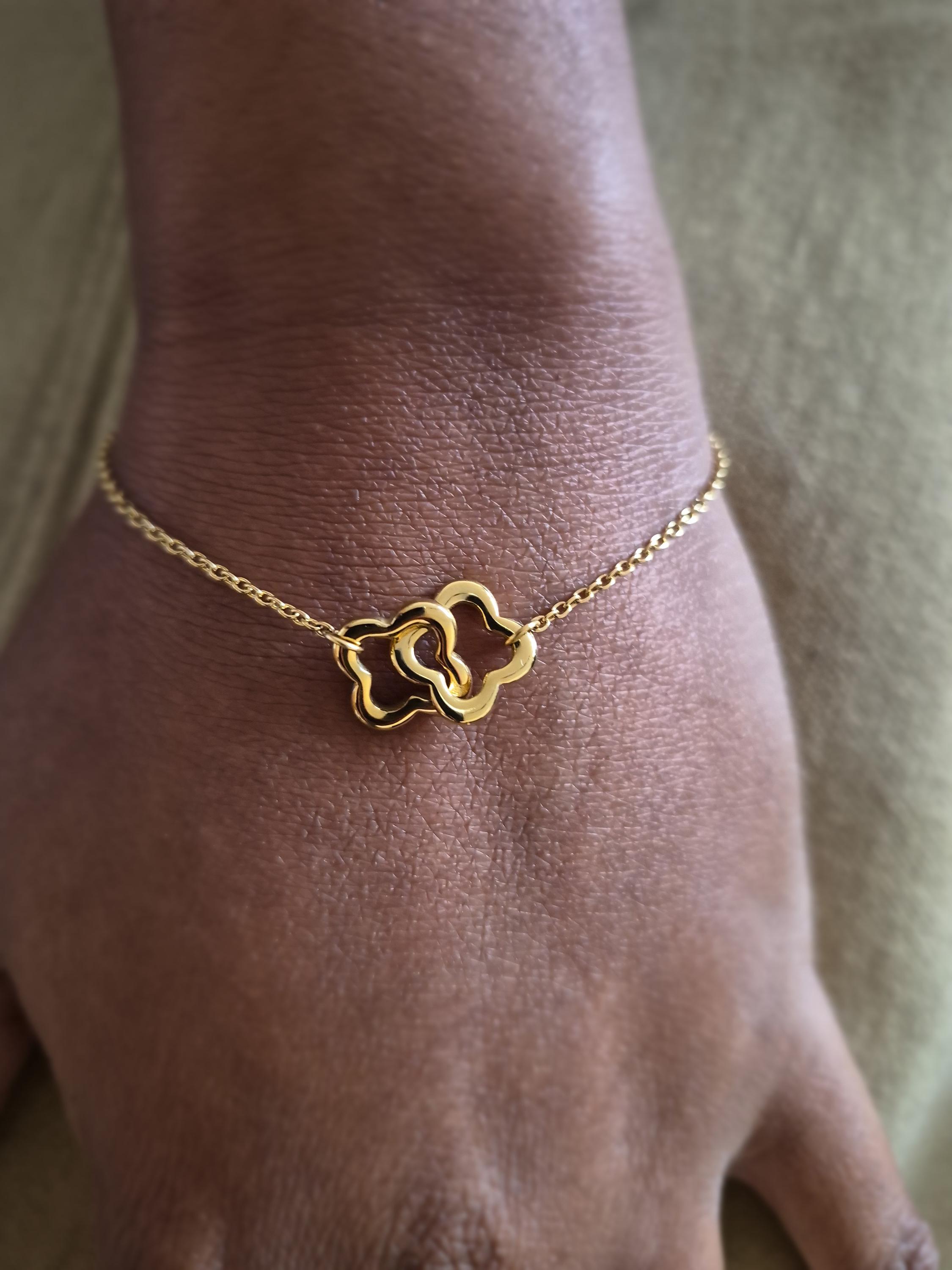 This mother-daughter bracelet, a golden clover in stainless steel, celebrates the unique, deep, sometimes complex but always loving bond between a mother and her daughter.