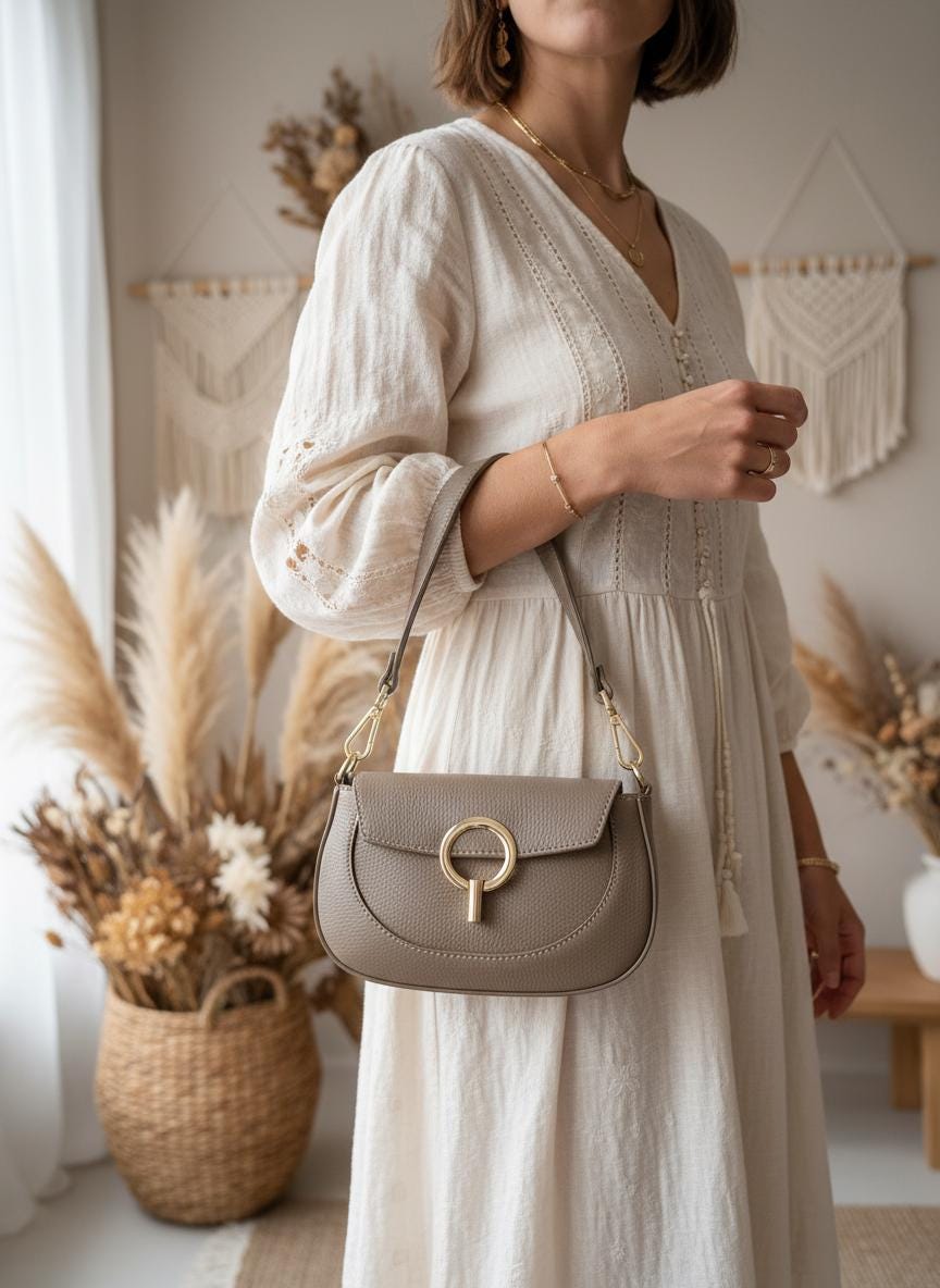 Its soft and refined taupe color easily matches all your outfits, from boho to more formal styles.