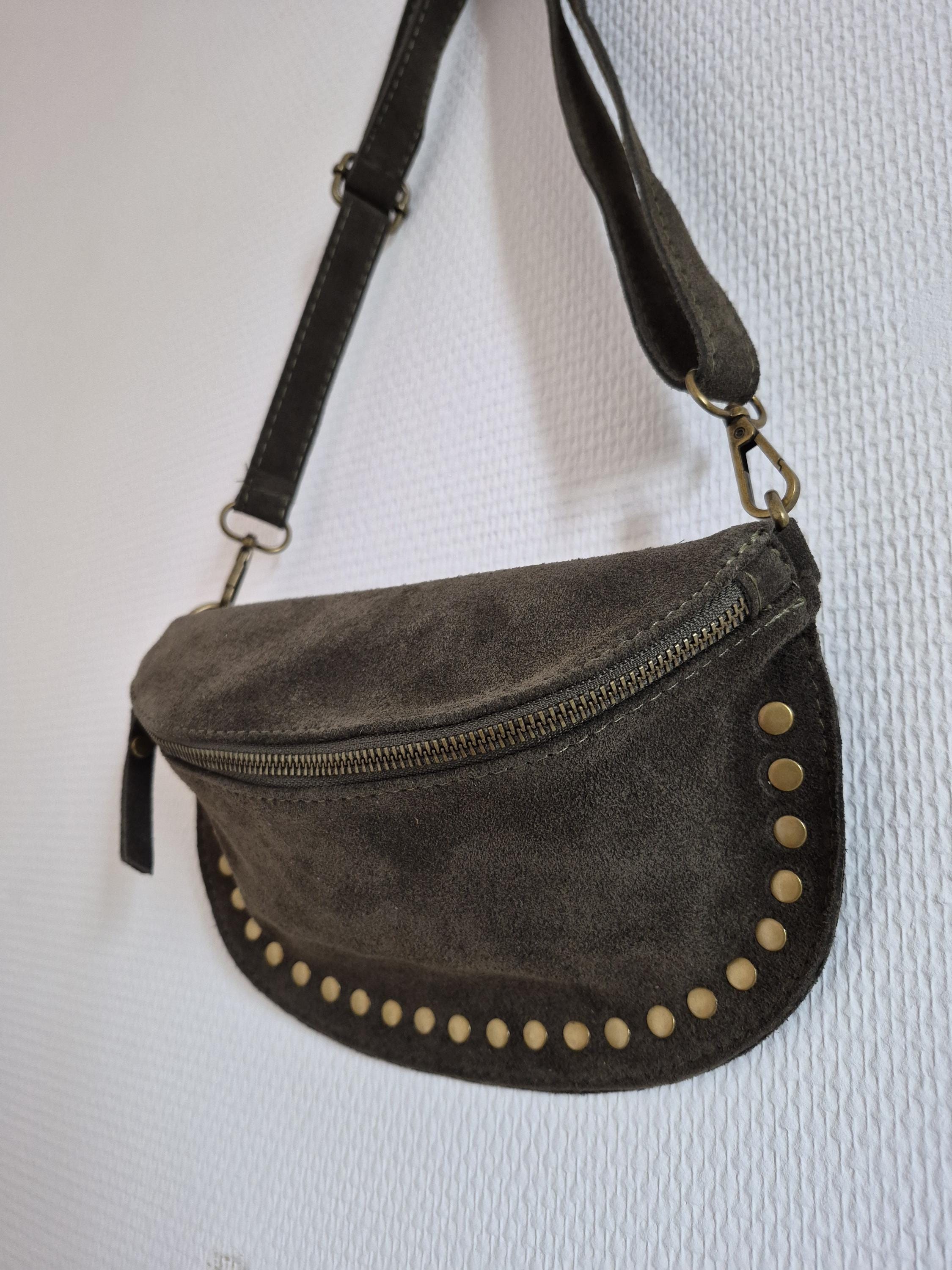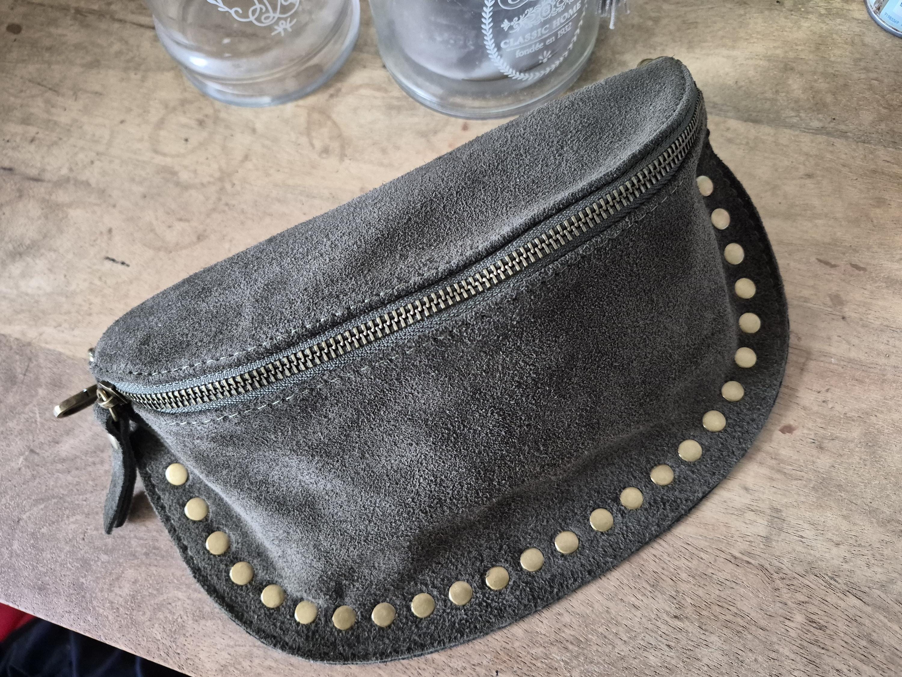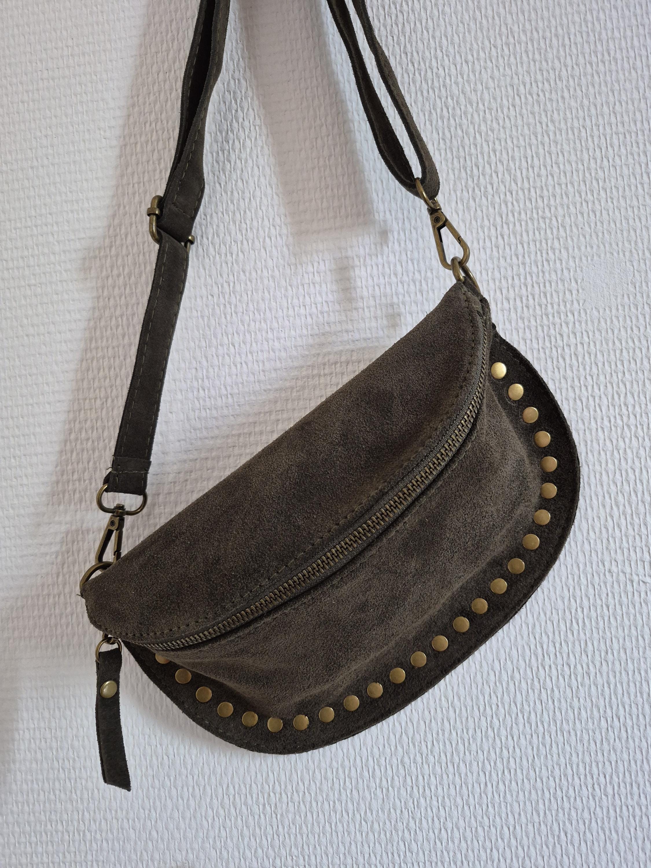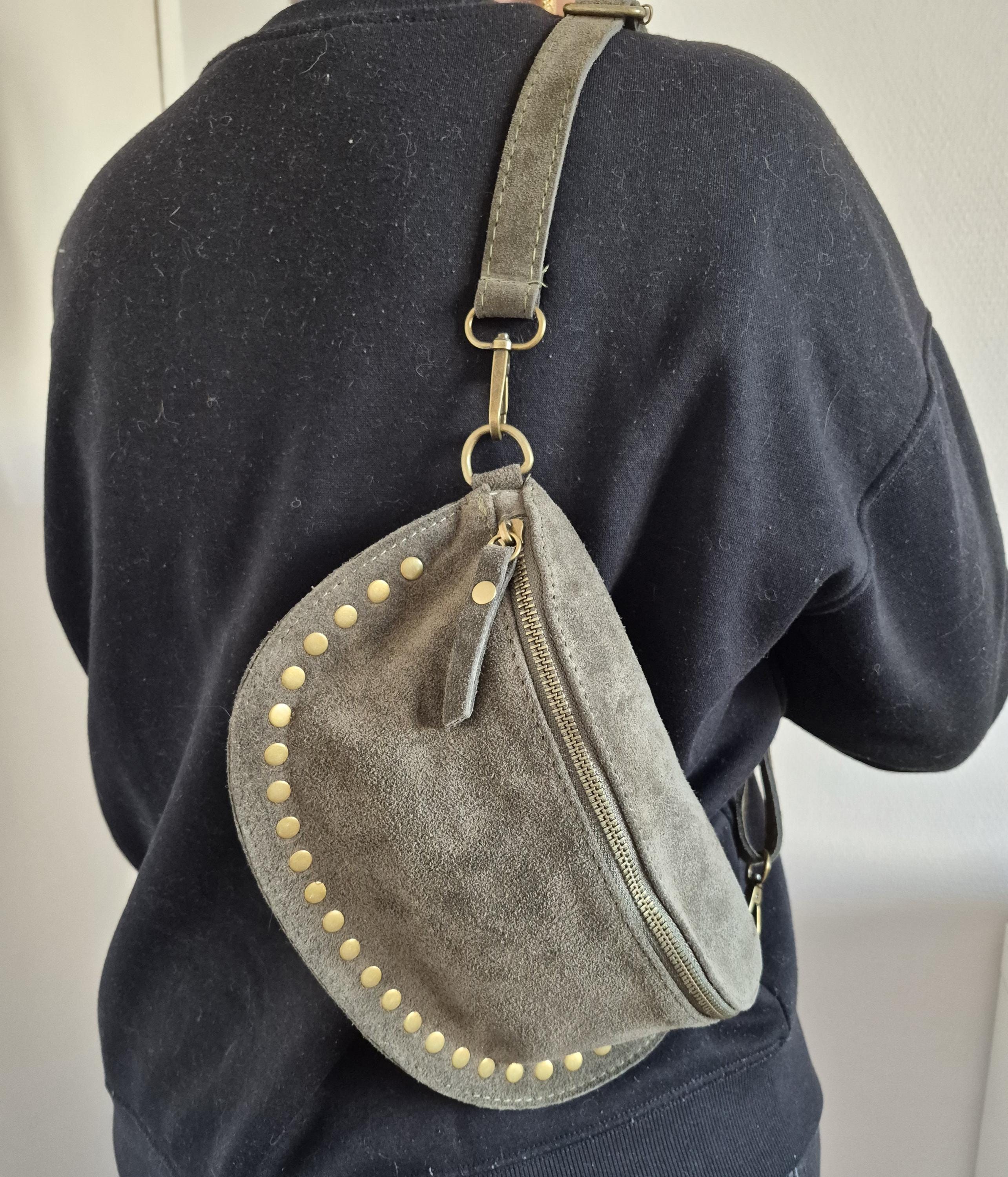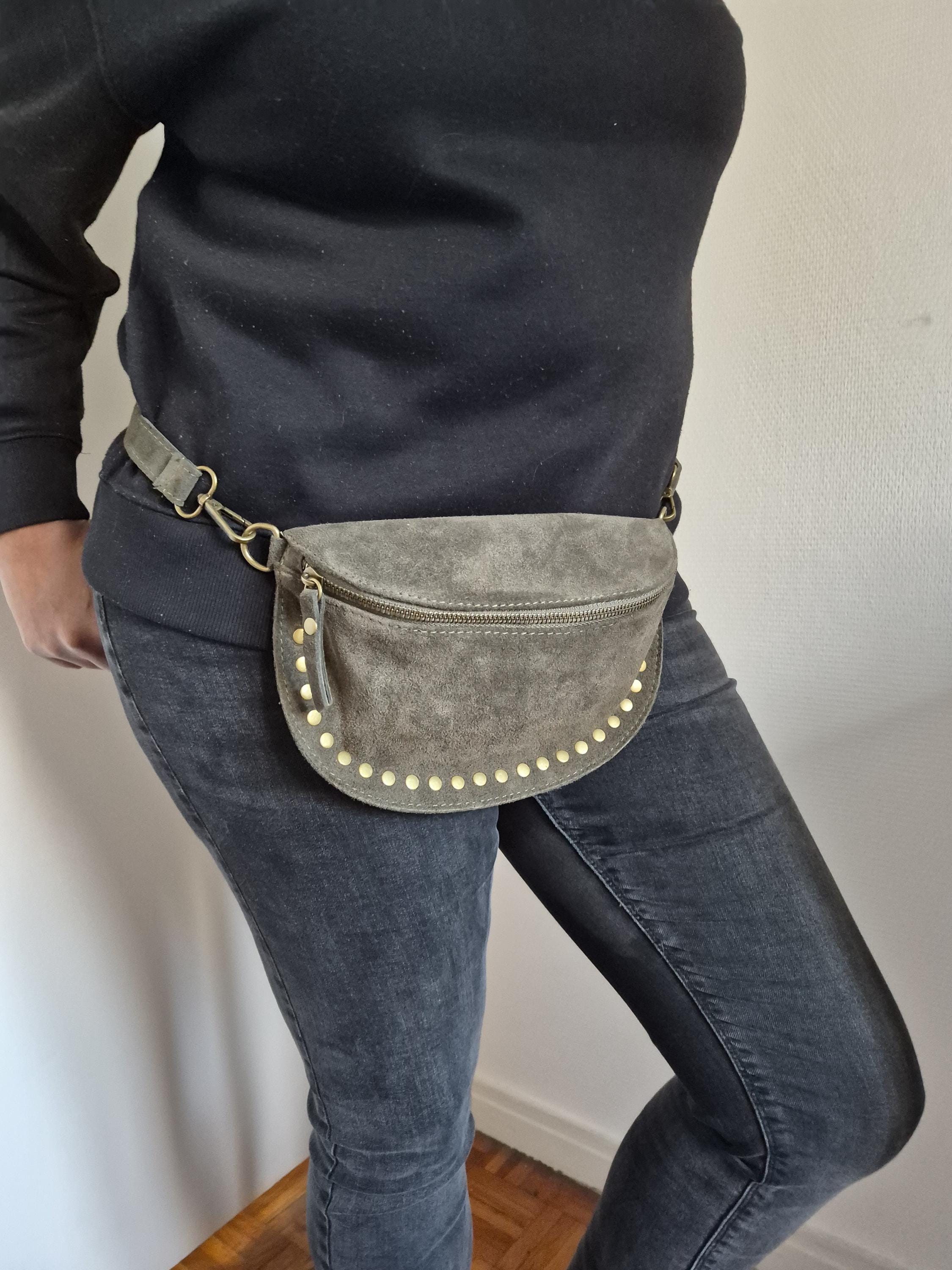 Green suede leather fanny pack with a timeless boho-chic style. Ideal for women looking for a practical, elegant, and trendy accessory.