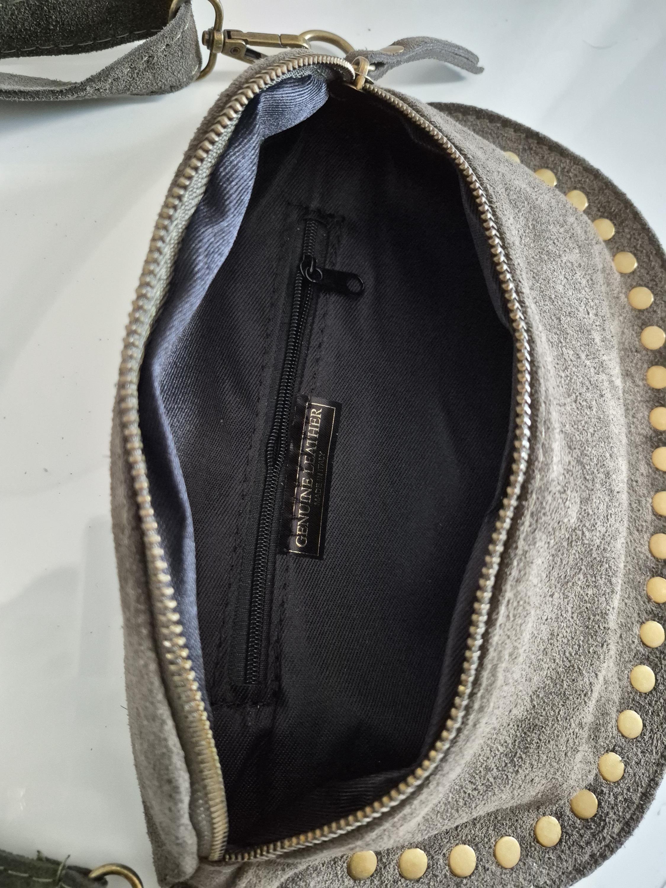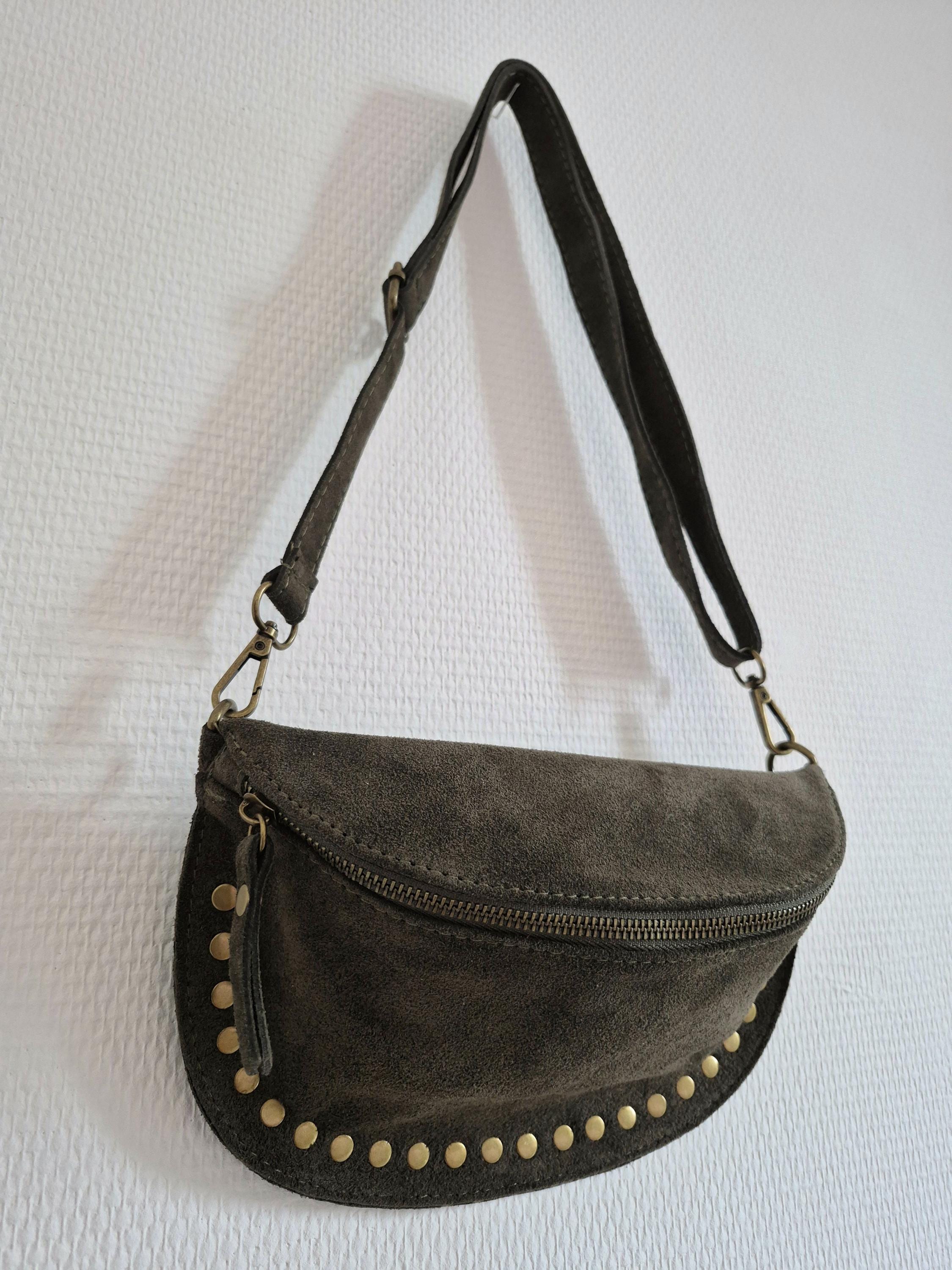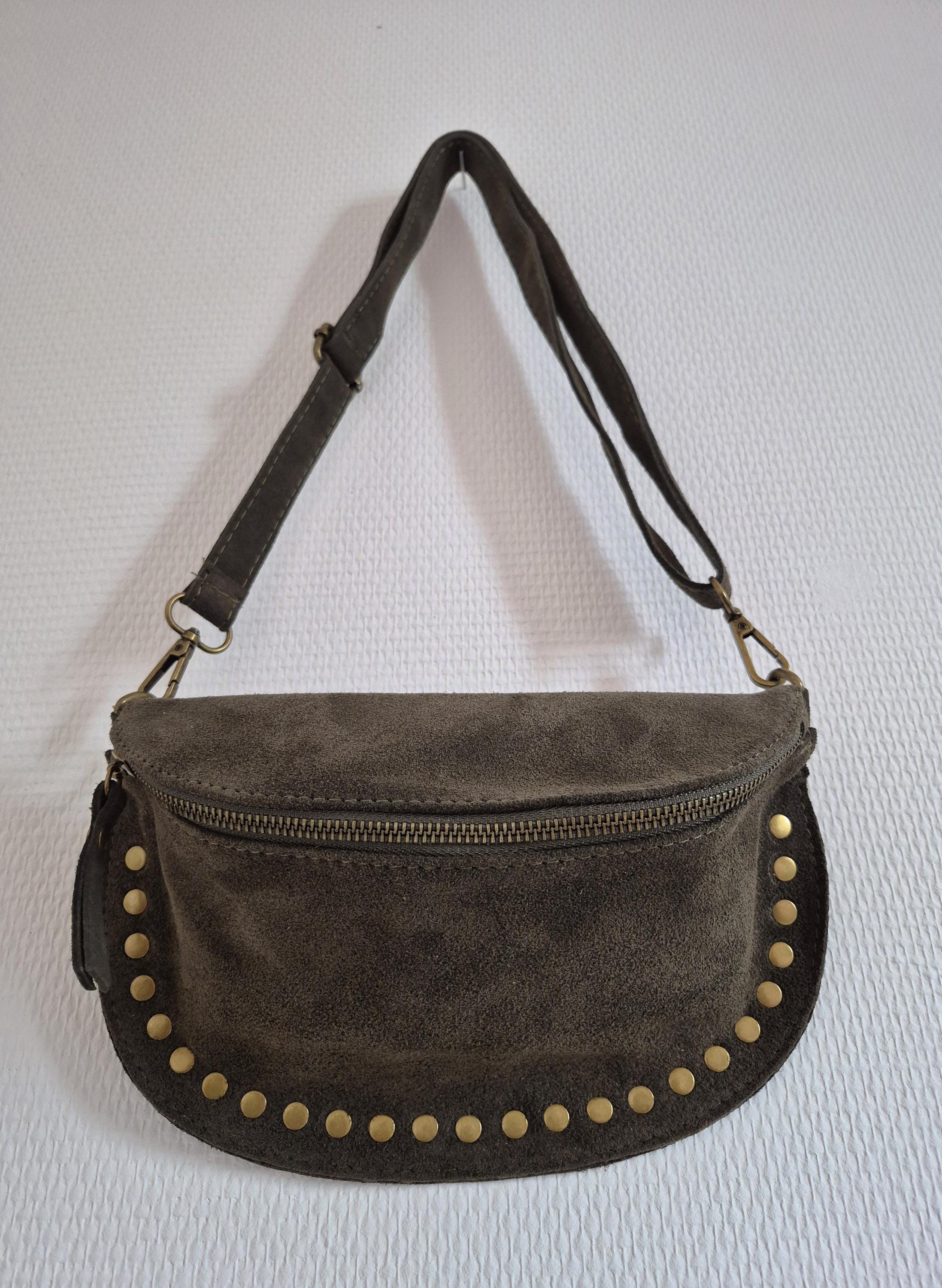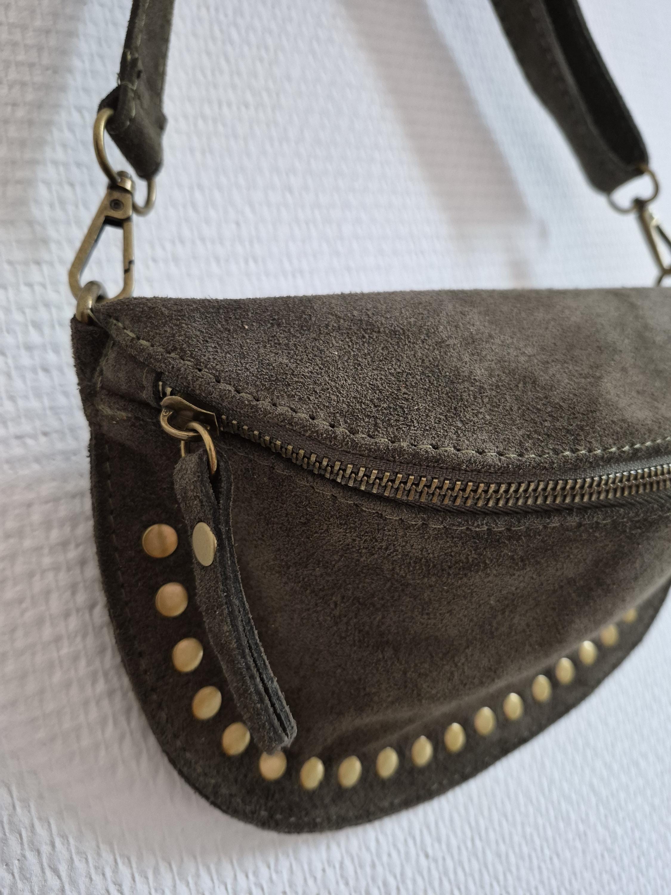 Green suede leather fanny pack with a timeless boho-chic style. Ideal for women looking for a practical, elegant, and trendy accessory.