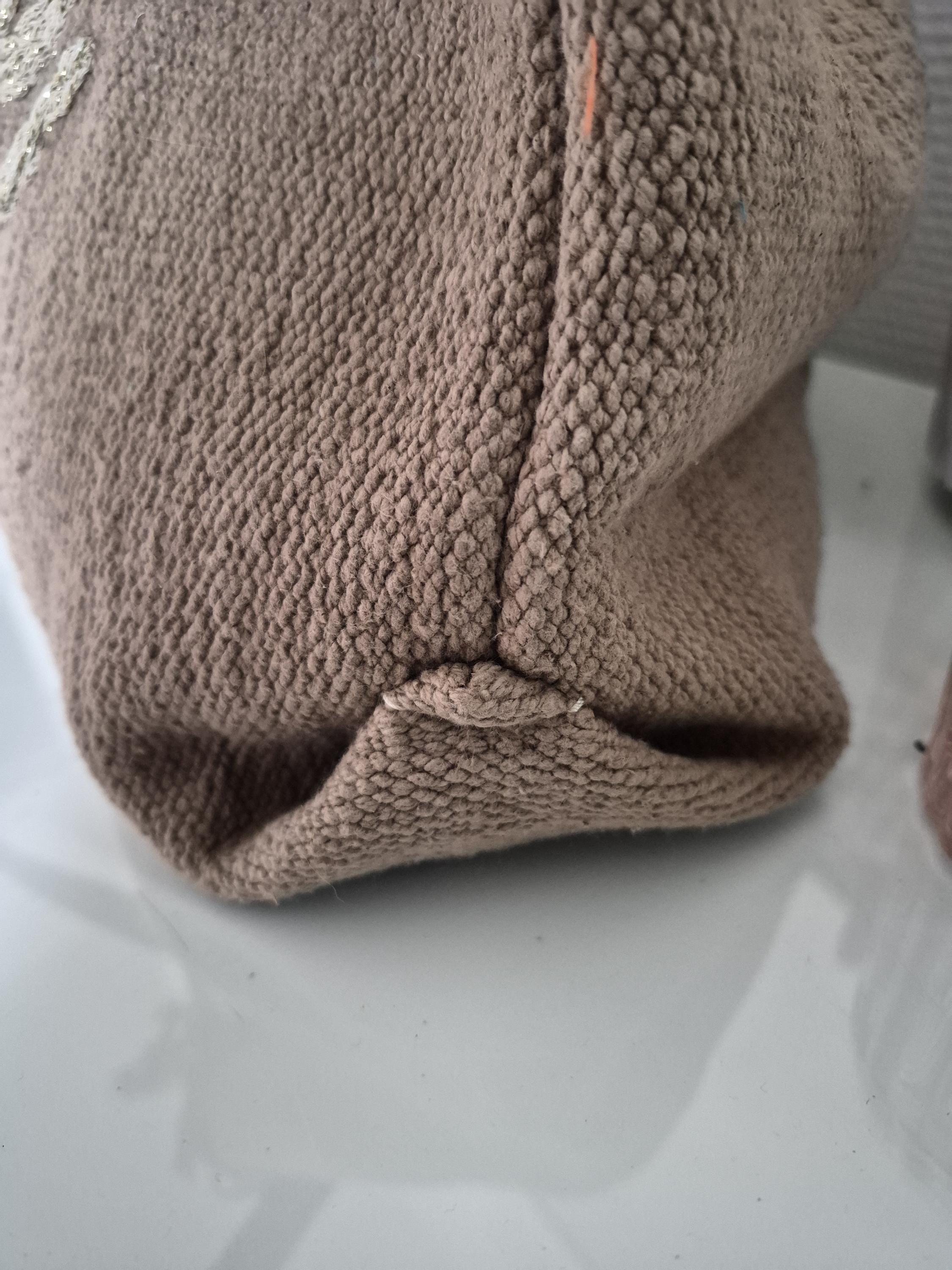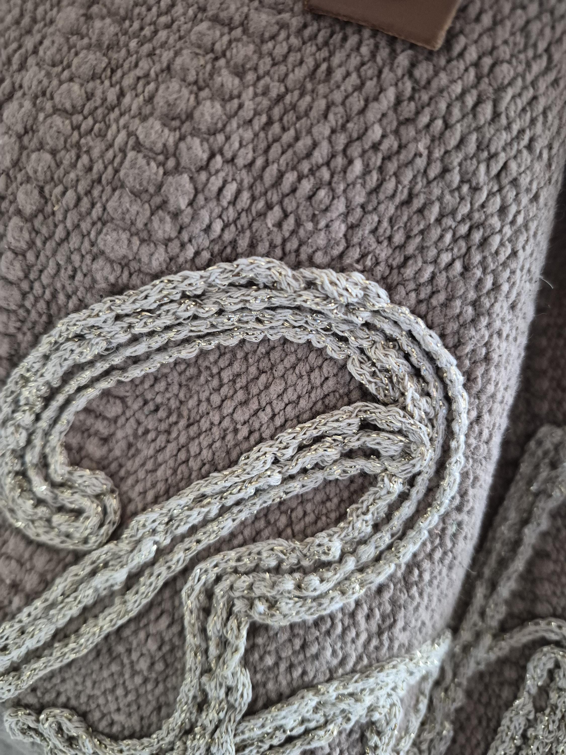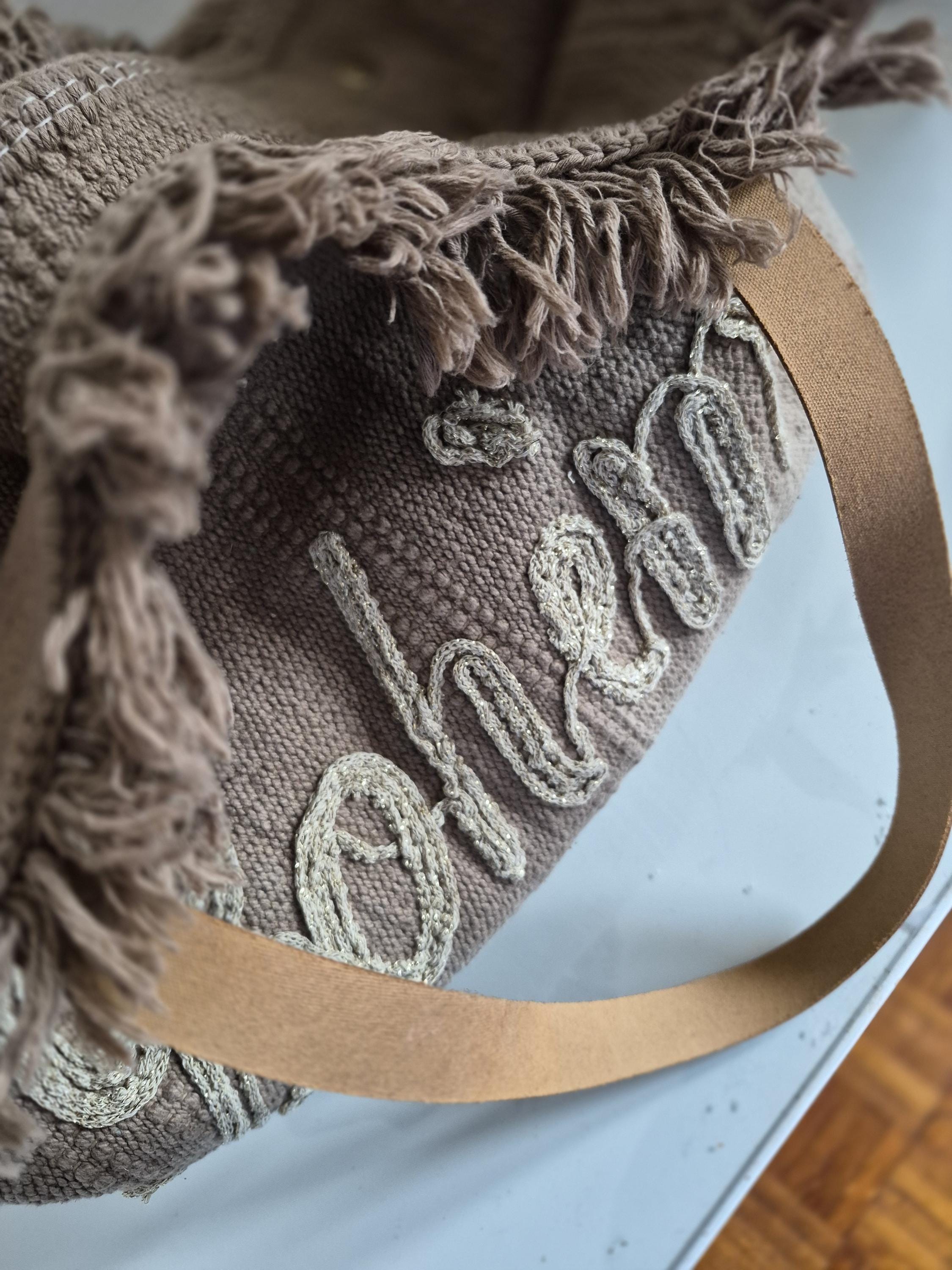 Made from soft braided cotton, it is adorned with delicate fringes and hand-crafted cream “Boho” embroidery.