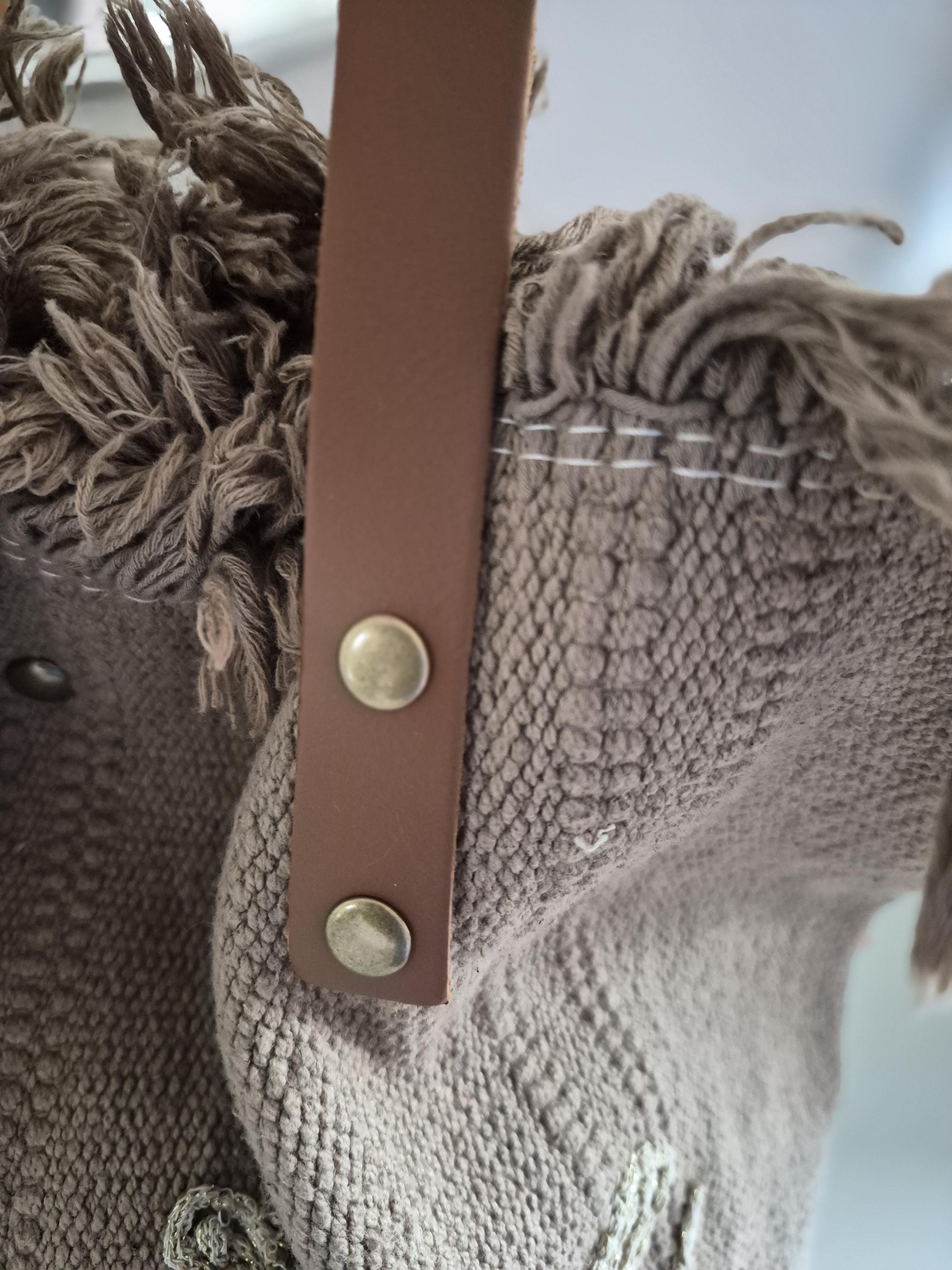 Its camel-colored faux leather handles add a warm and authentic touch.