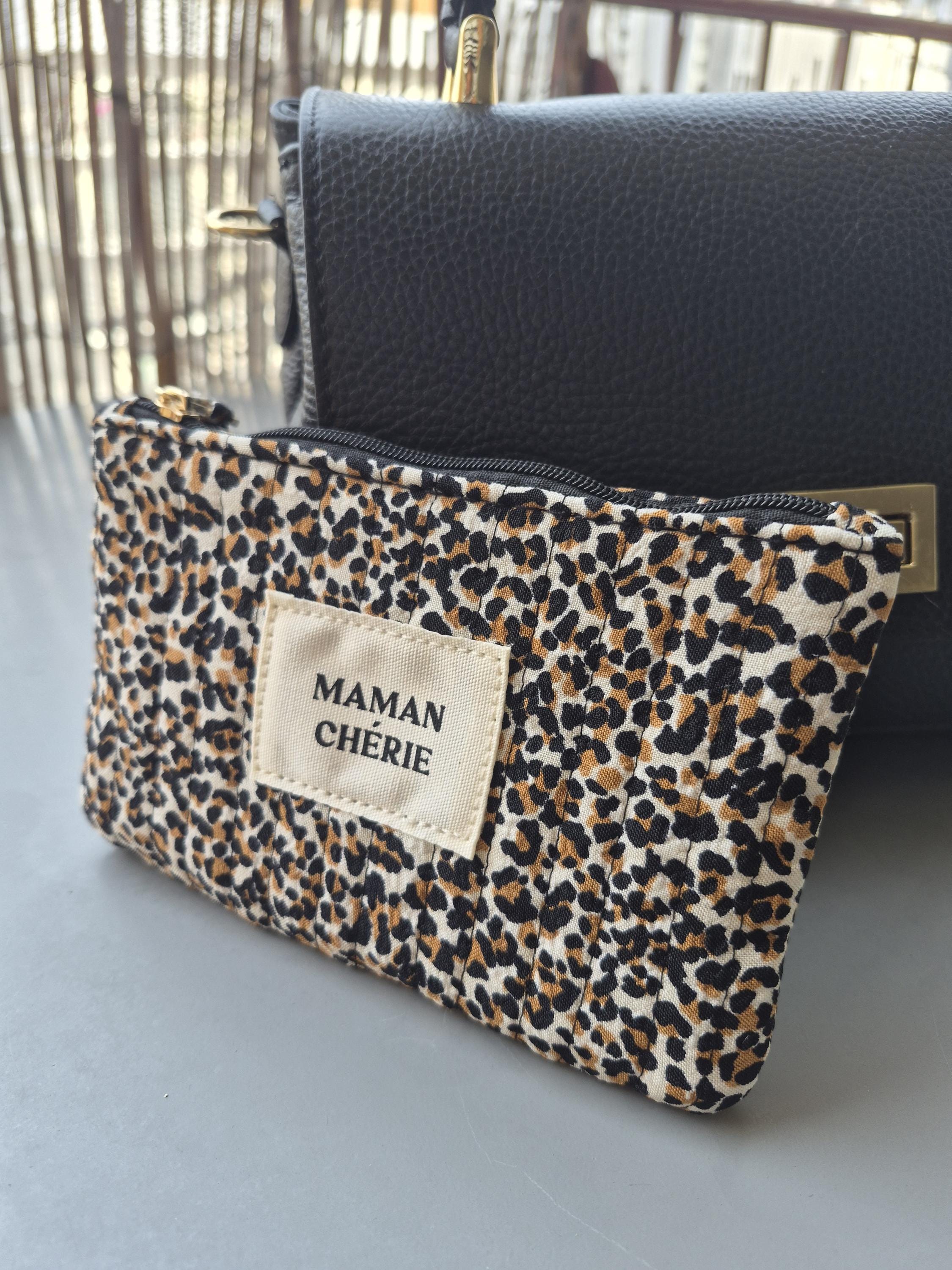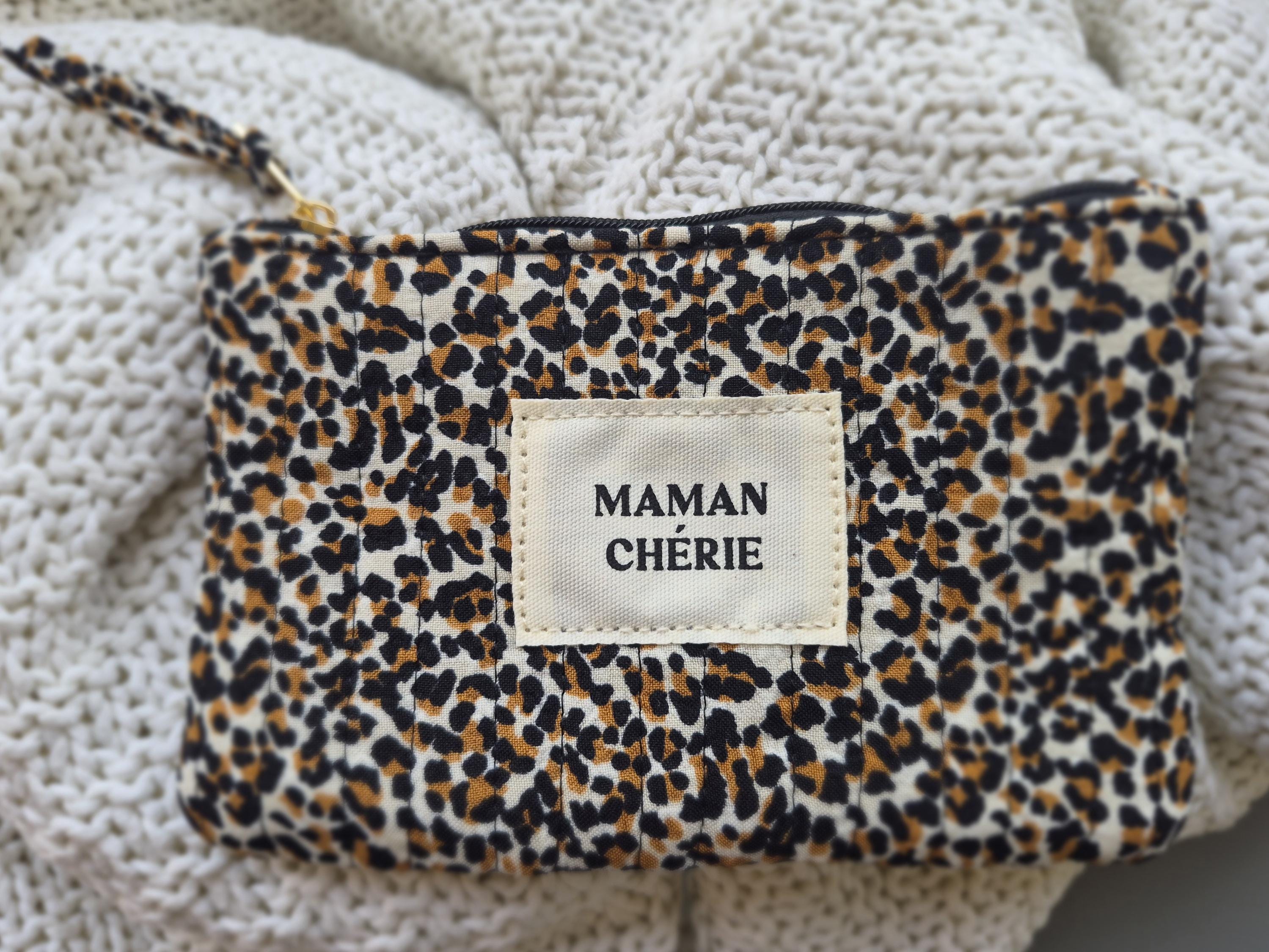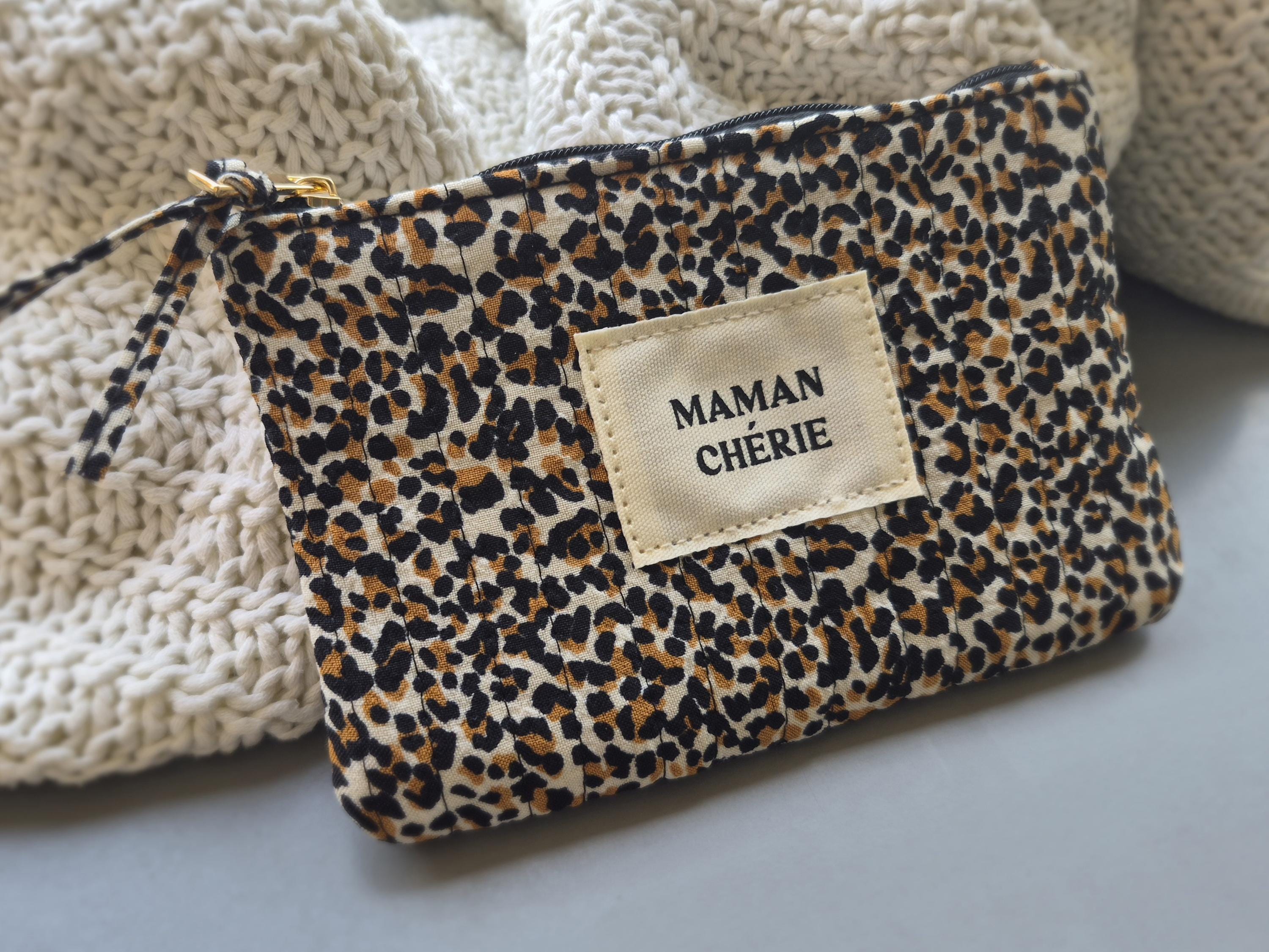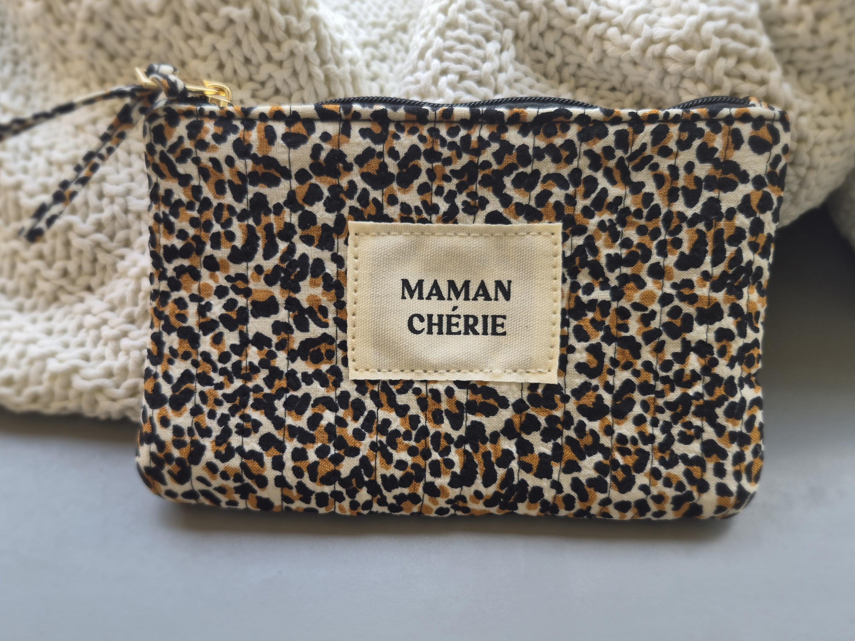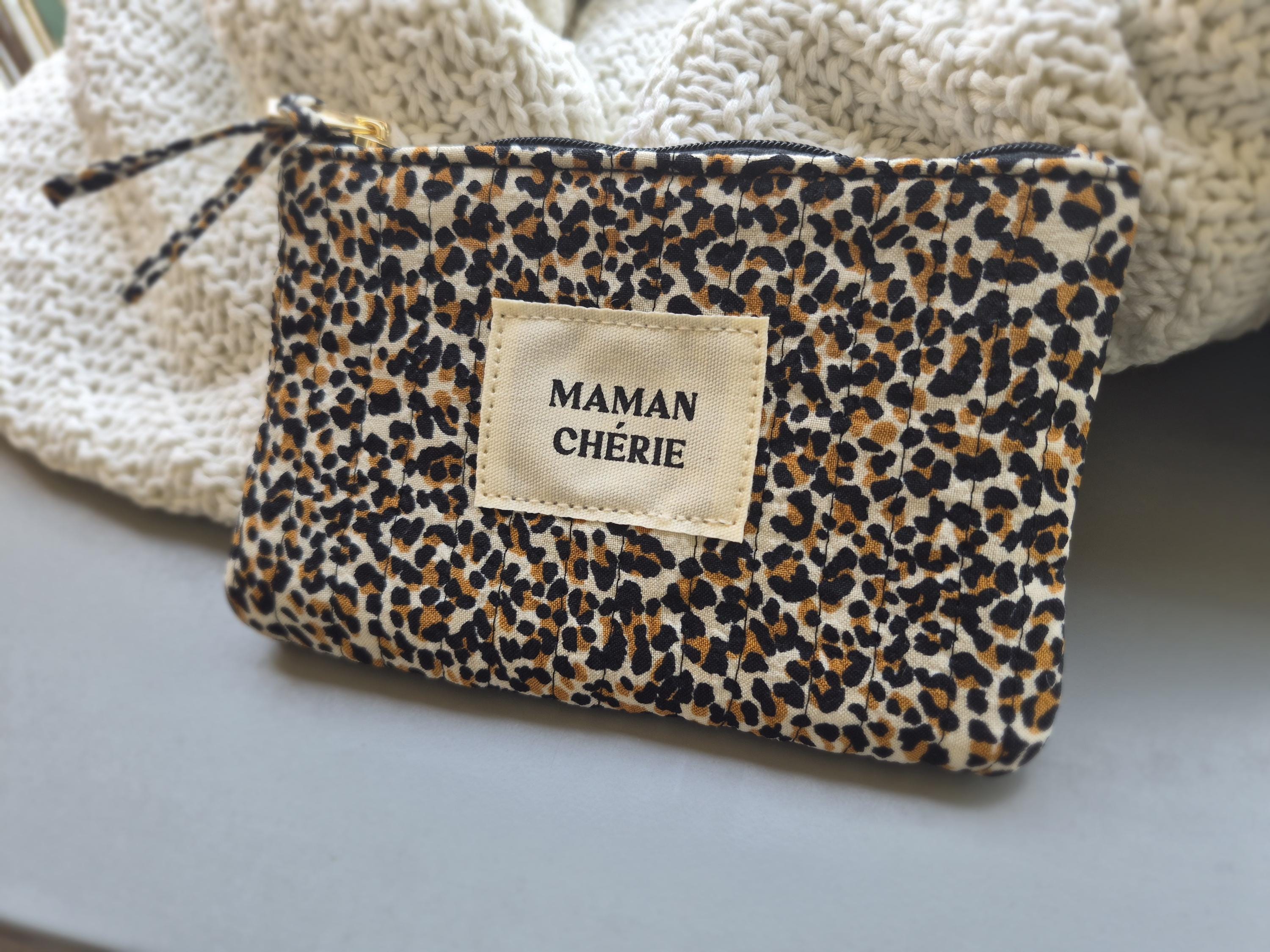 Fall in love with this MAMAN CHÉRIE pouch in a trendy leopard print! Perfect for slipping into a handbag, it will quickly become the essential accessory for all stylish moms.
