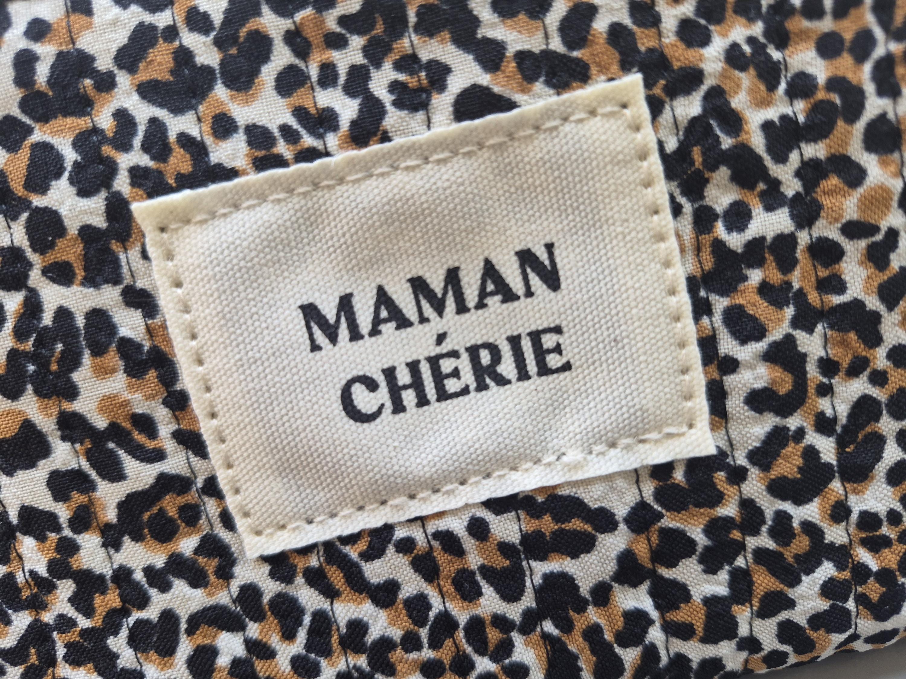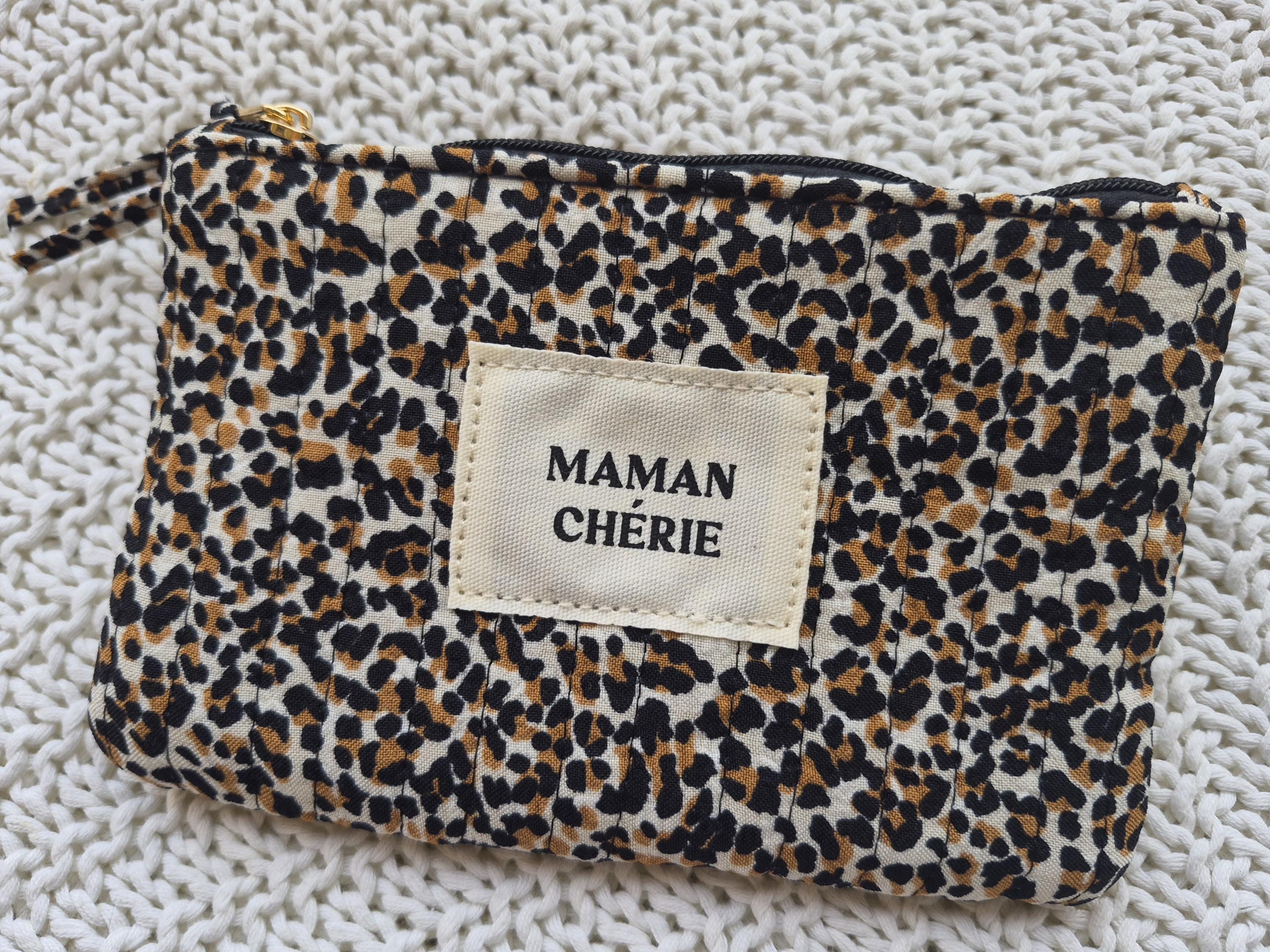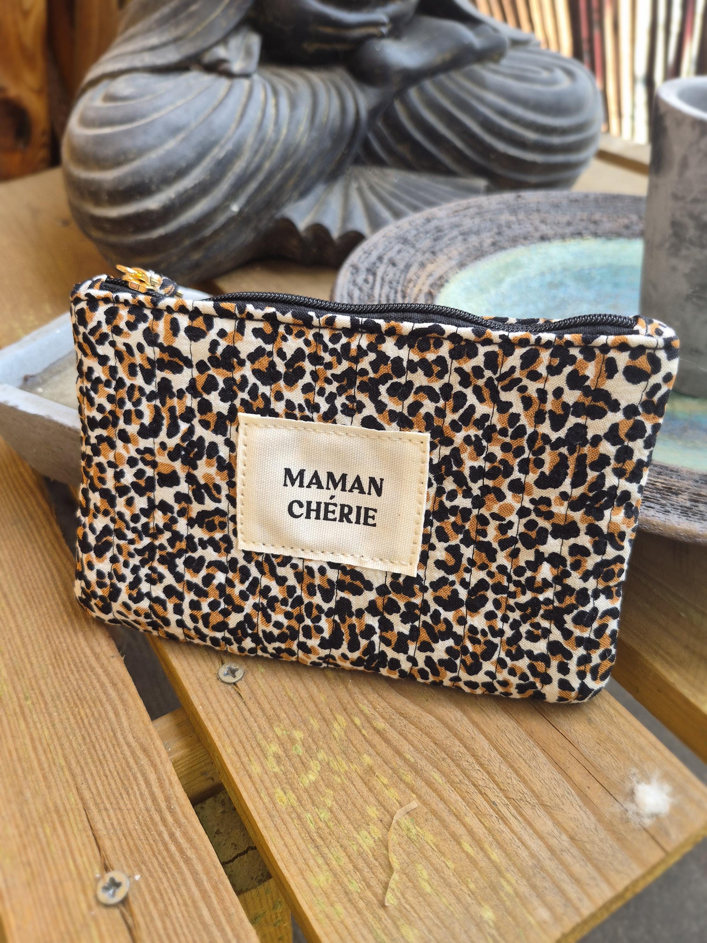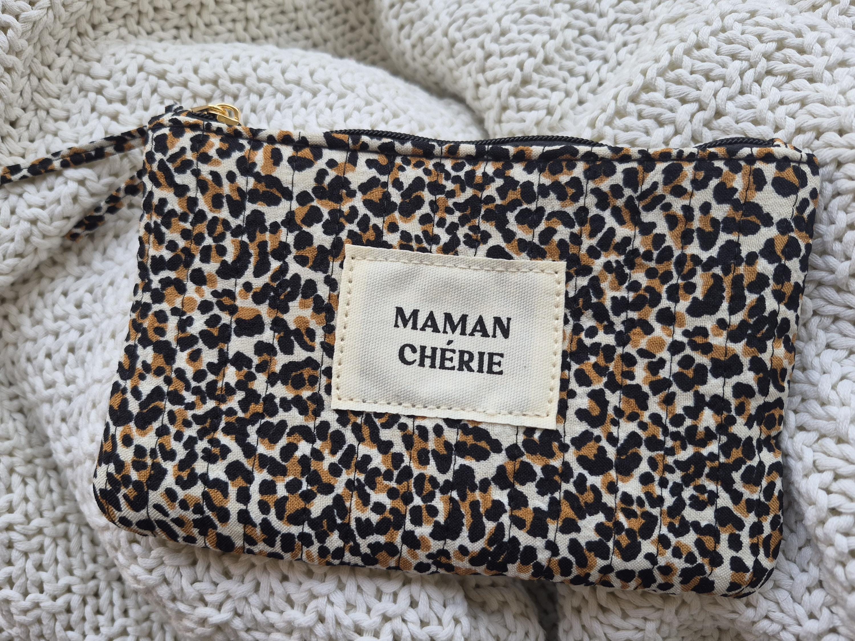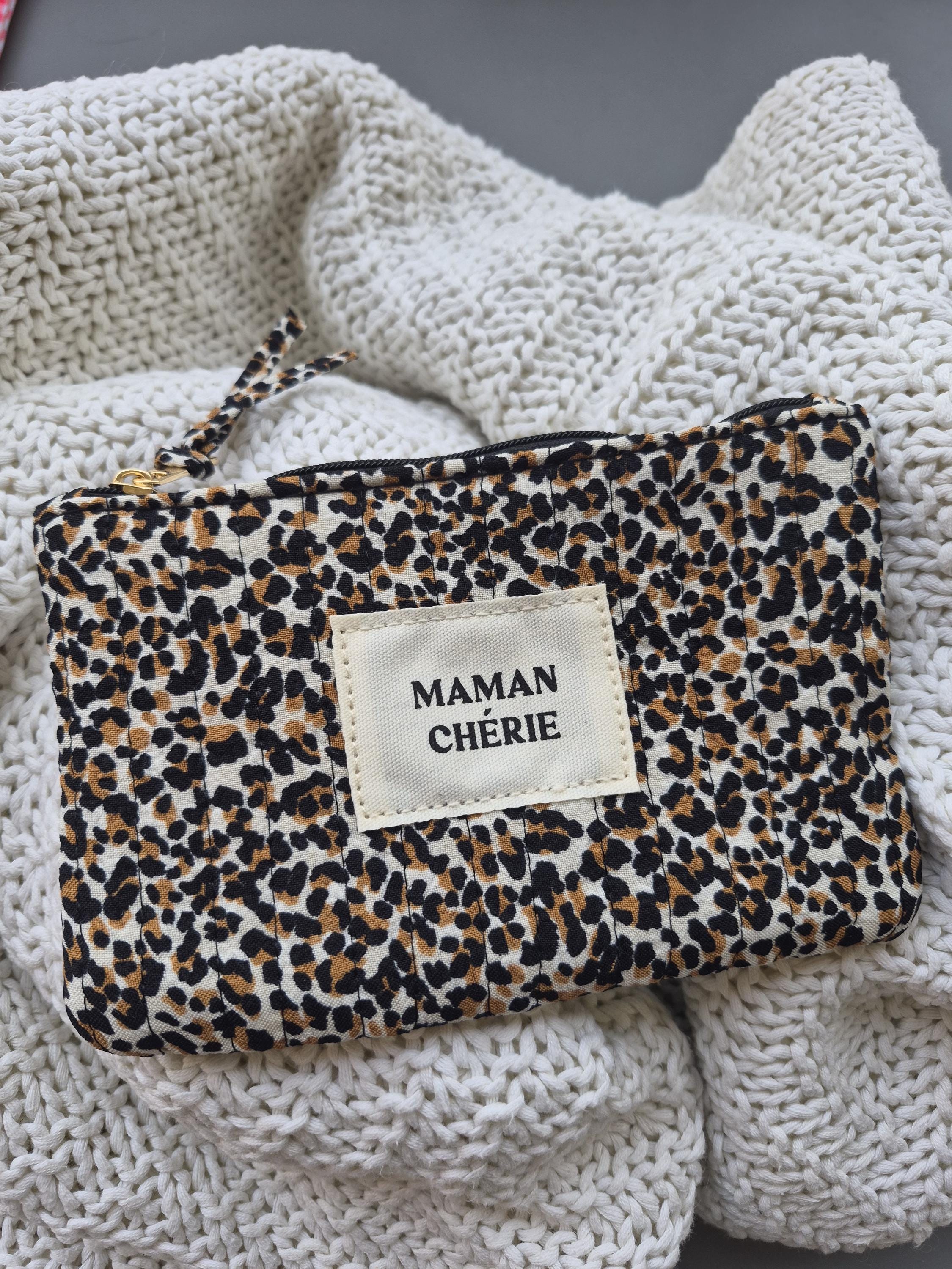 Fall in love with this MAMAN CHÉRIE pouch in a trendy leopard print! Perfect for slipping into a handbag, it will quickly become the essential accessory for all stylish moms.